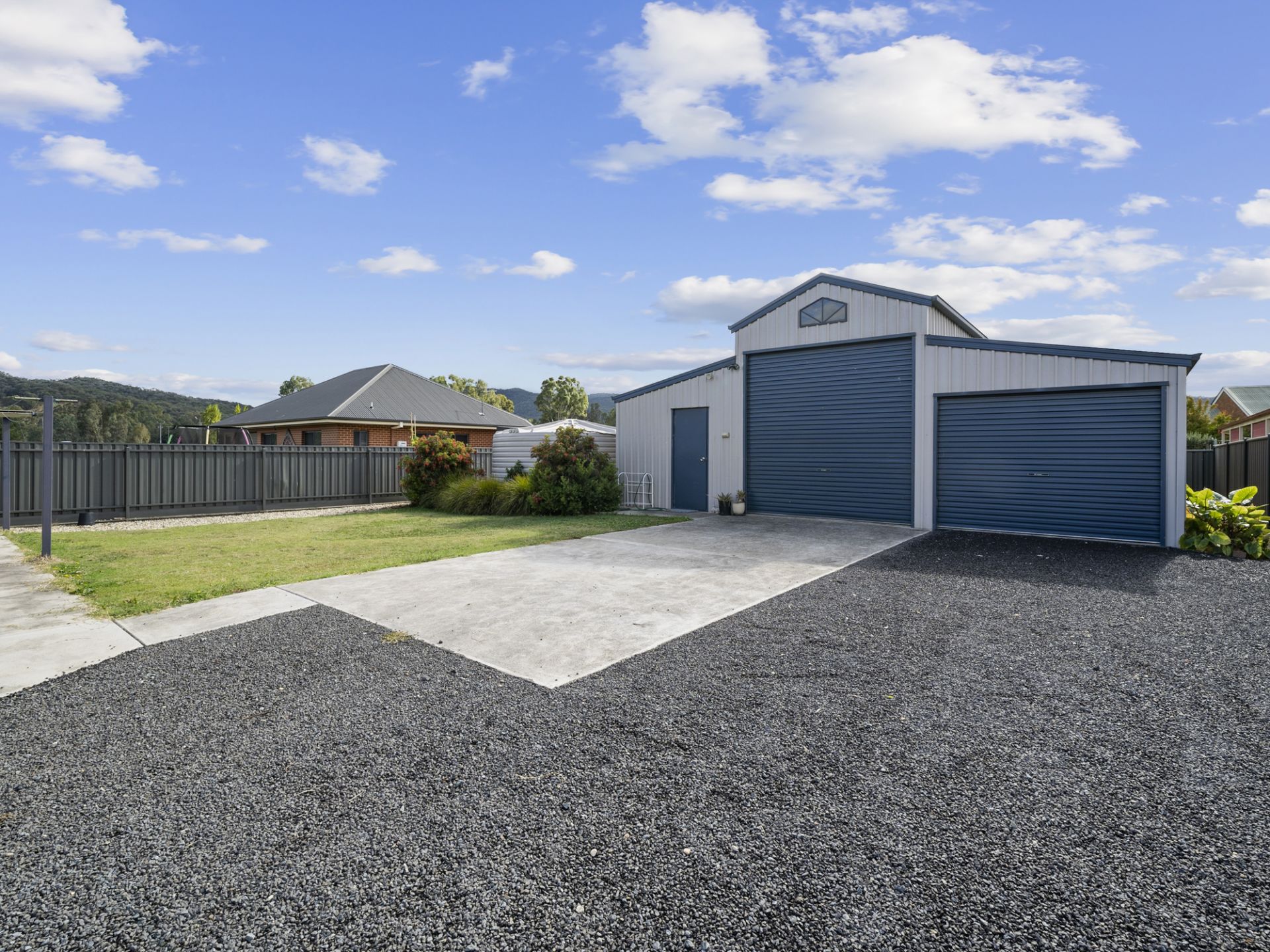 An 8 x 9 American barn style insulated and lined, high bay, lockup shed caters to all requirements and offers many possibilities. There is 3 phase power available. Two 2,200litre rainwater tanks adjacent to the shed, provide excellent water supply to the garden and property. Solar hot water system is a bonus.