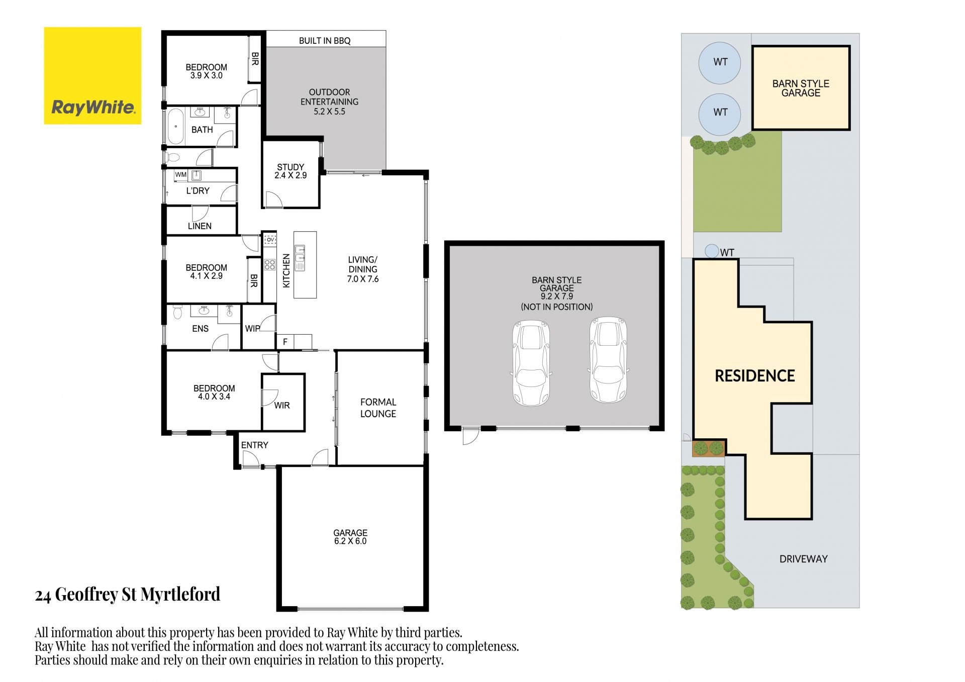Experience the eiptiome of town living with this remarkable 3 bedroom, 2 bathroom + study or 4th bedroom steel home built by JG Lewis in 2010 using steel frame construction. Spacious master bedroom with walk in robe and ensuite, BIR’s to bedroom two and three. With an inviting open plan kitchen/dining & living area including a large island bench with walk in pantry and a spacious dining area and family room together with a separate formal lounge with sliding doors for added privacy. From the dining area opens up to an Alfresco courtyard that features a stainless-steel outdoor kitchen with automatic outdoor blinds which allows for this space to be used all year round. The double lockup garage has internal access with further storage + the laundry incorporates a separate walk- in linen / storage room.
