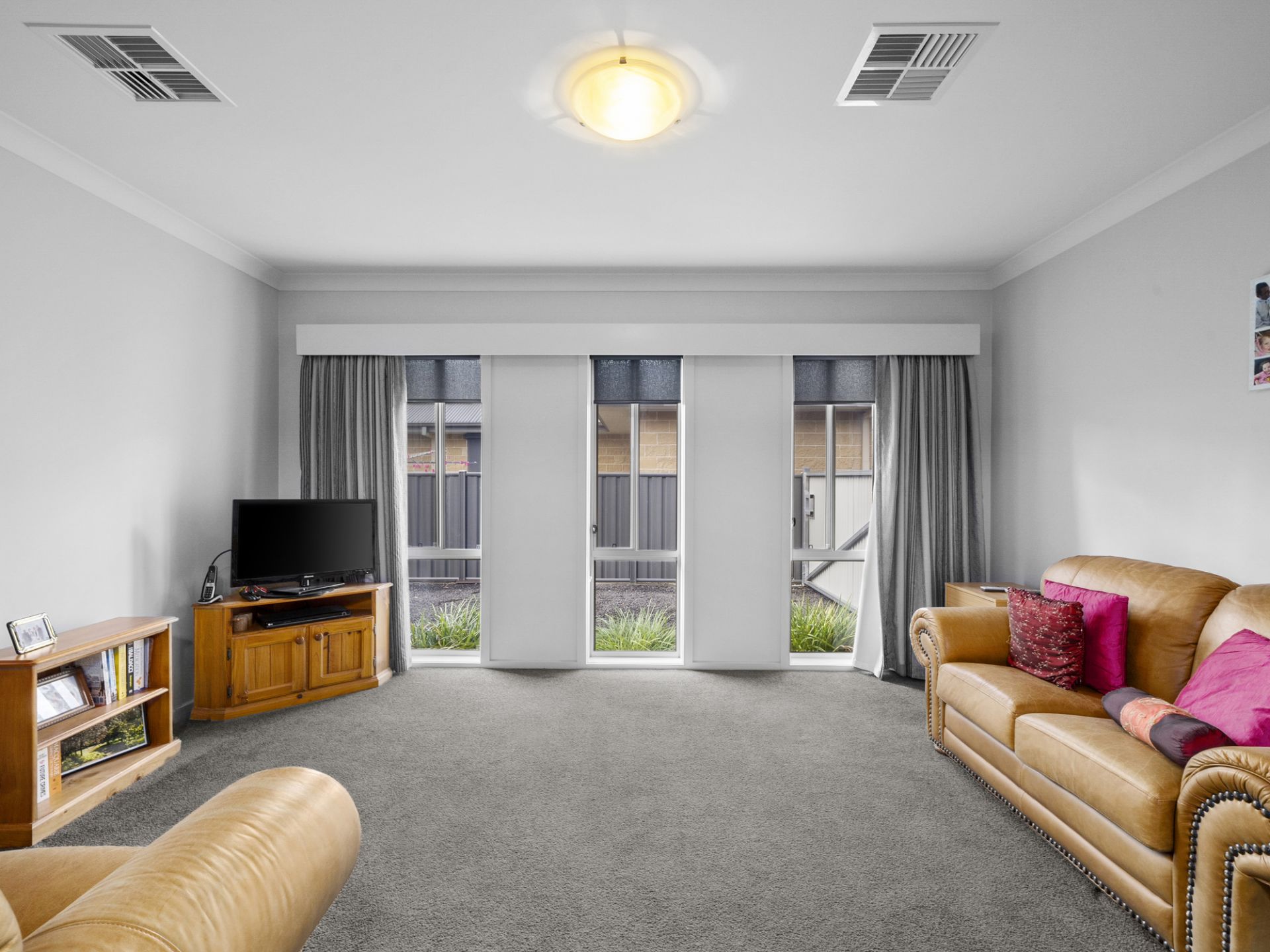 With ducted air conditioning throughout the home with internal and external roller blinds and drapes to windows for all year-round comfort.