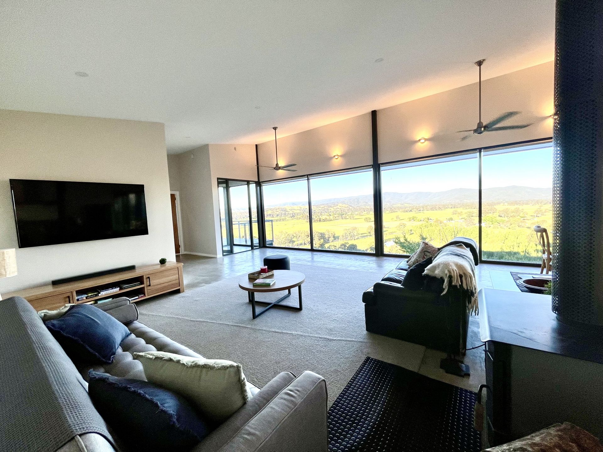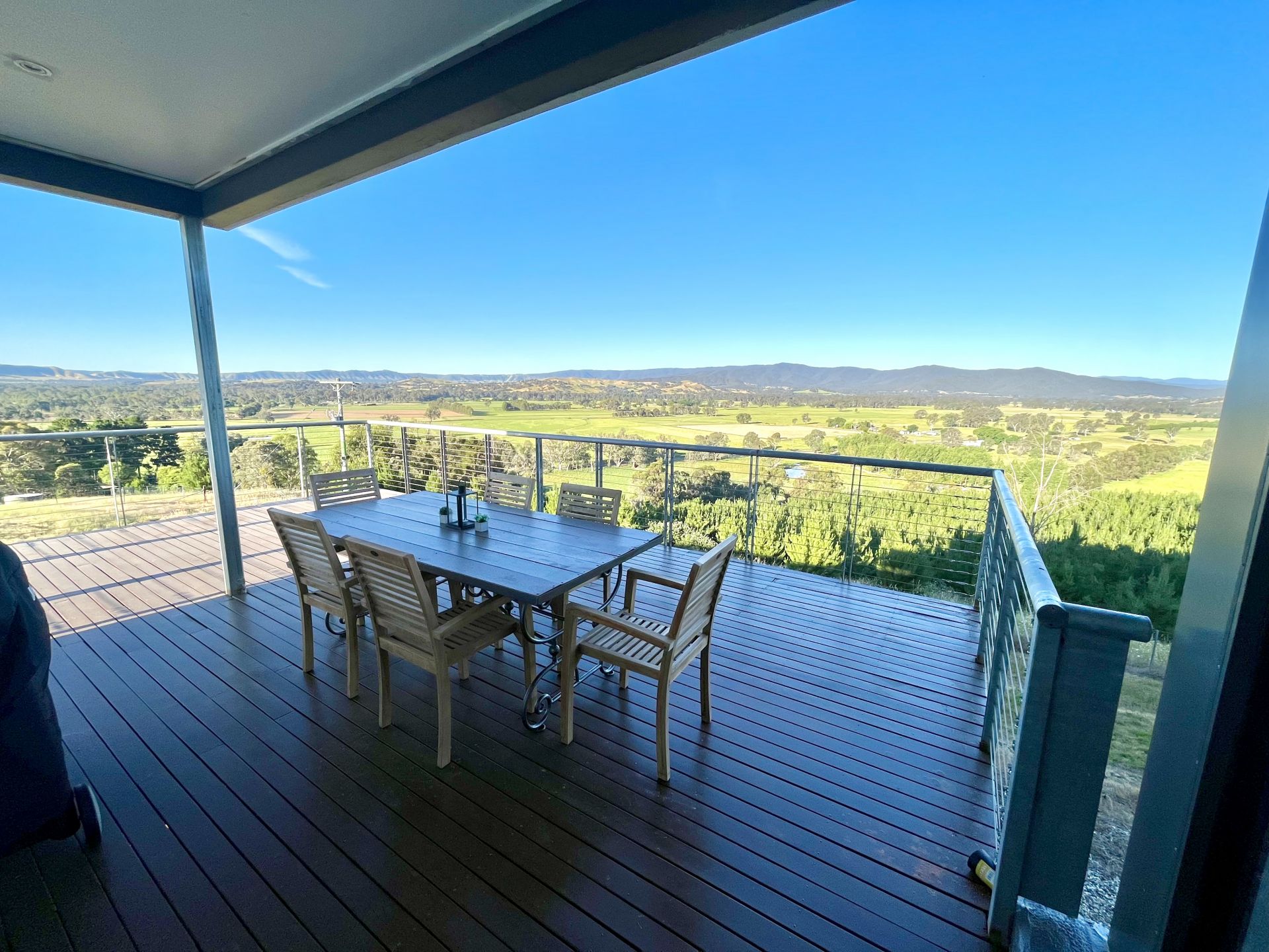 The views from this house are spectacular – from the horn of Mt Buffalo to Kneebone Gap, Murmungee Basin, and the Ovens Valley.