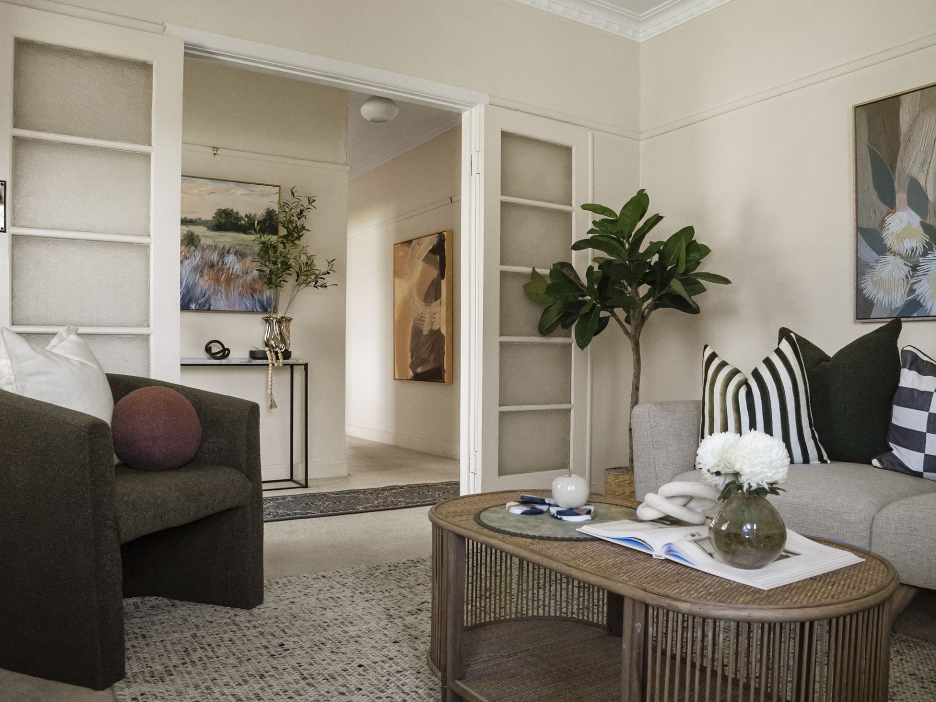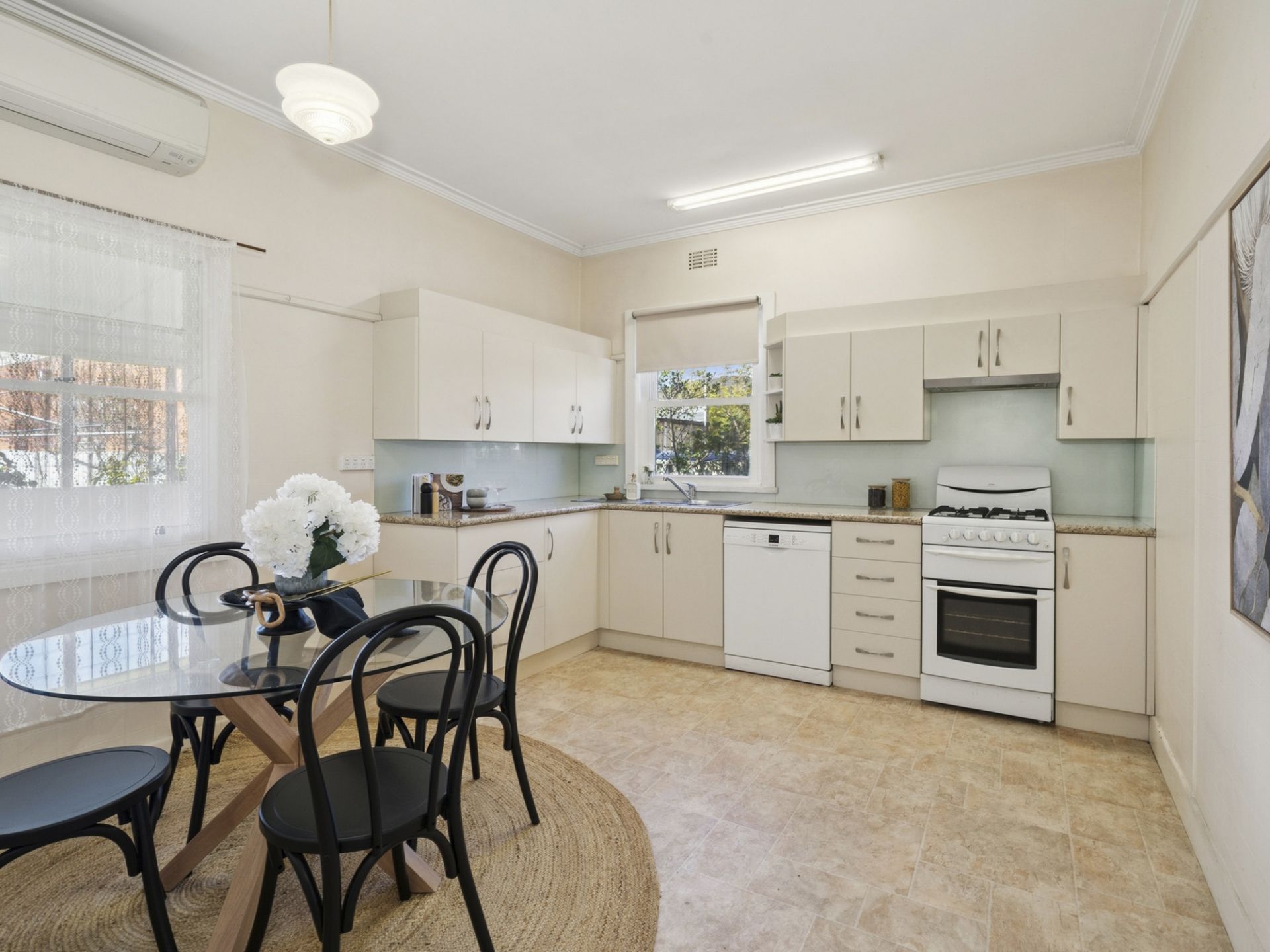 At the heart of the home lies a spacious and light-filled kitchen, complete with a gas cooker, dishwasher, and an abundance of bench and storage space – perfect for those who love to cook or entertain.