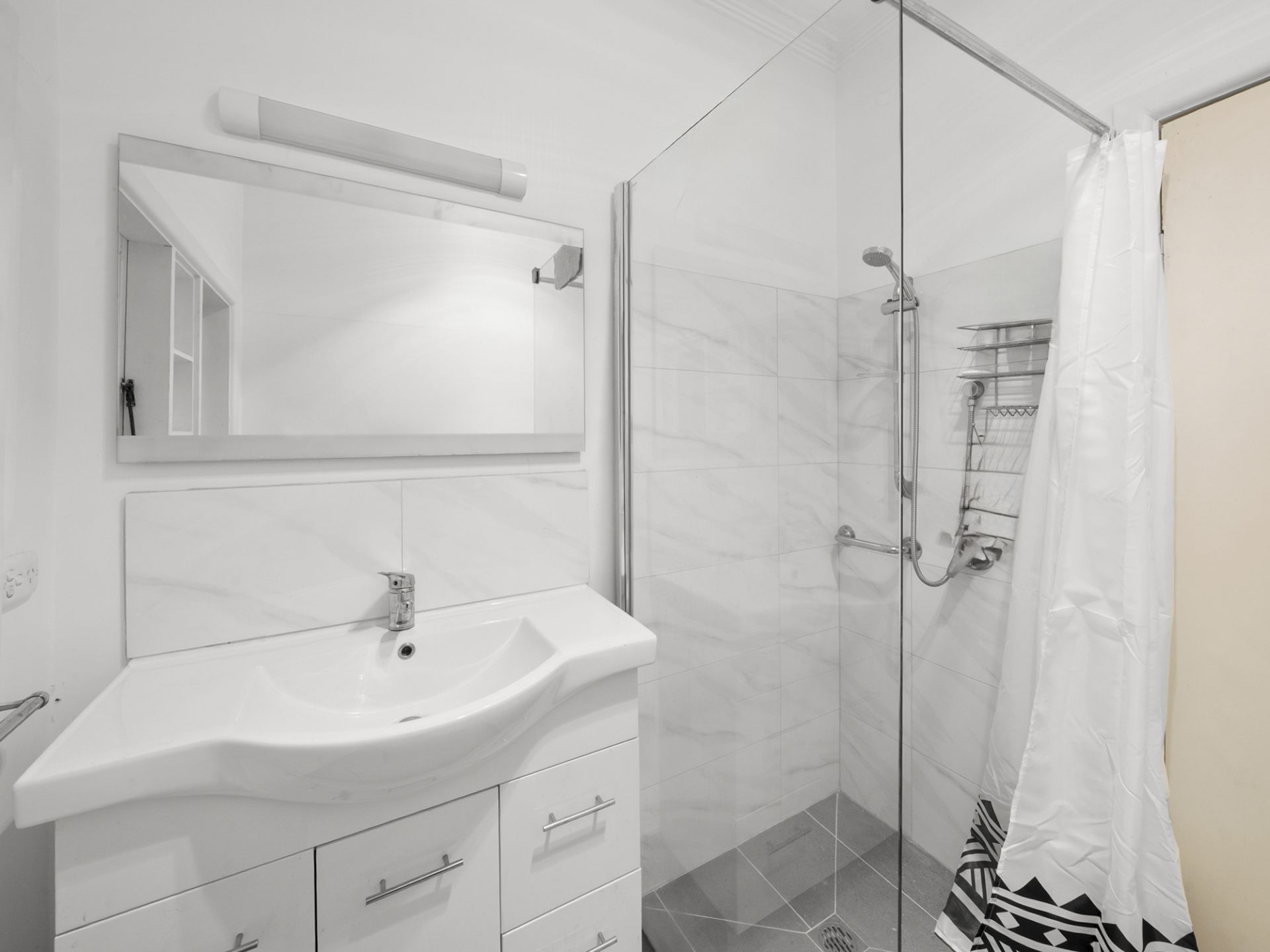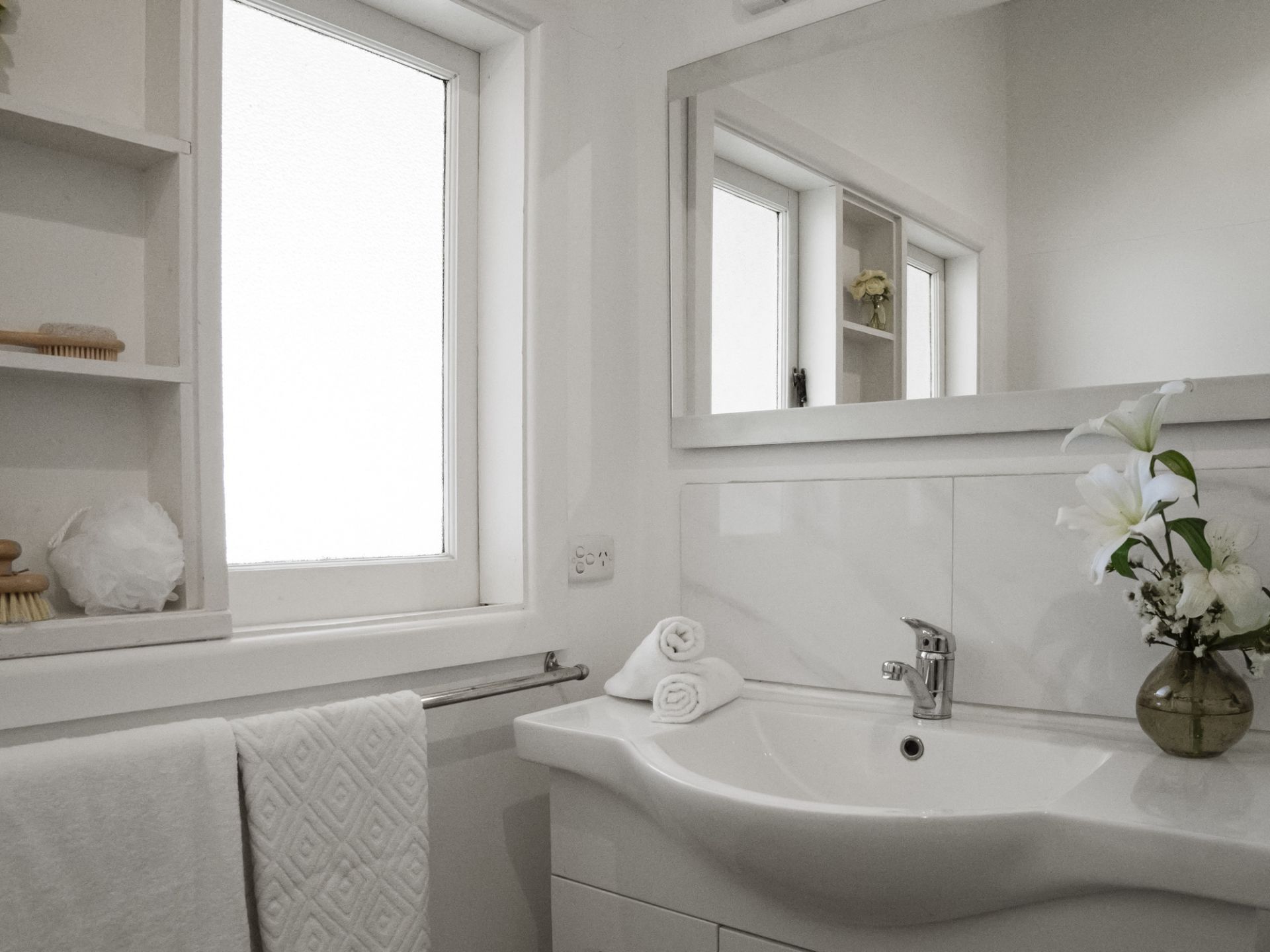 The main bathroom is thoughtfully designed with a walk-in shower, vanity, and toilet, while an additional WC offers added convenience for busy households.
