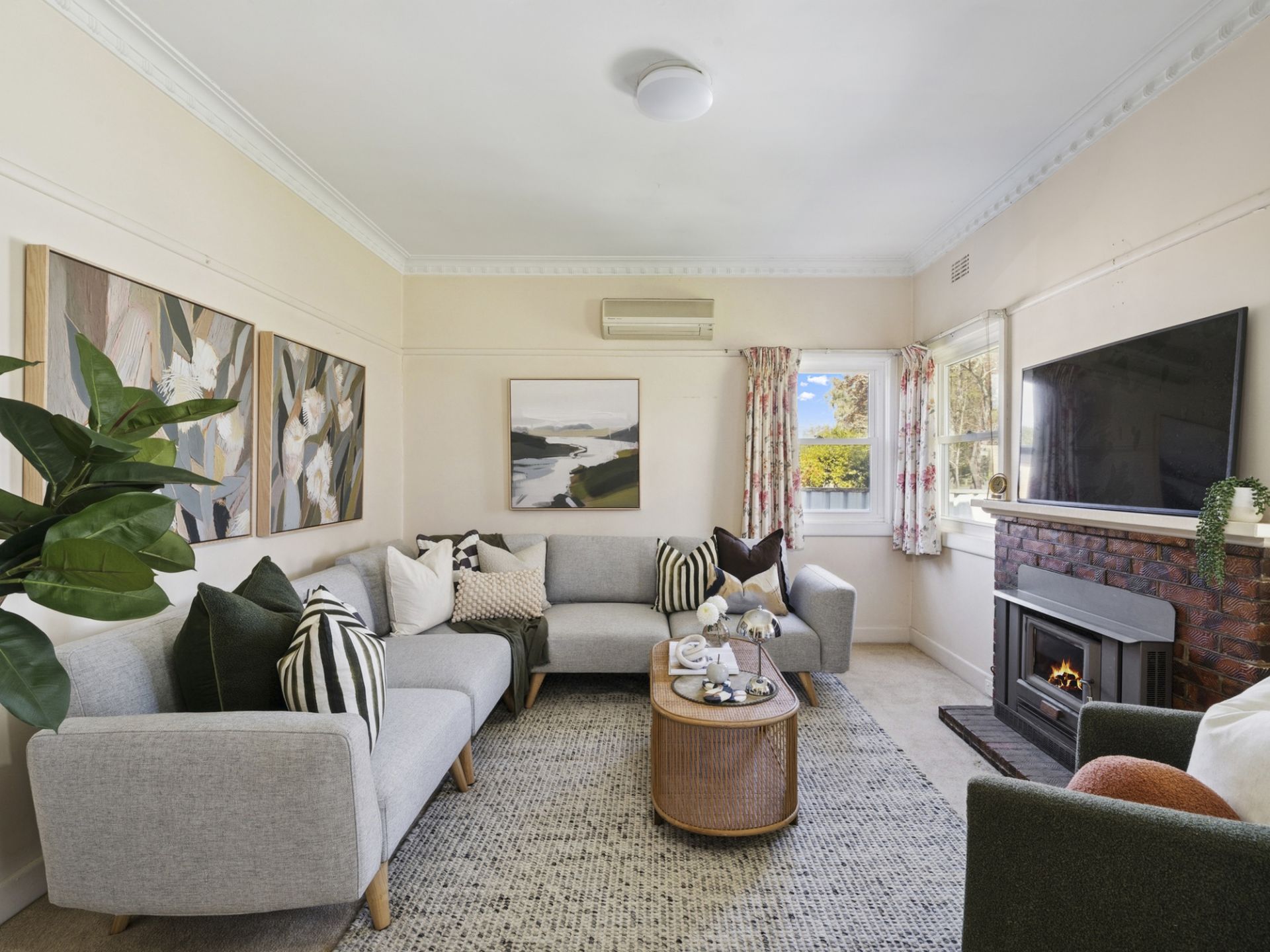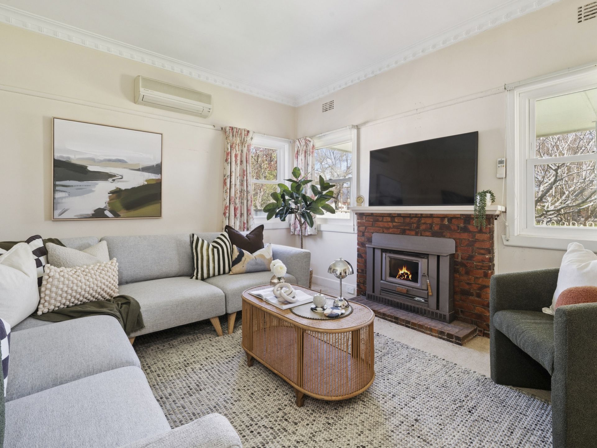 Comfort is assured year-round with multiple split systems, a cosy inbuilt wood heater, and underfloor heating in the fourth bedroom, creating a welcoming atmosphere in every season. The home retains its original charm with soaring 9ft ceilings and has been modernised with double-glazed windows at the front and one side of the home, installed approximately 15 years ago to enhance energy efficiency and quiet living.
