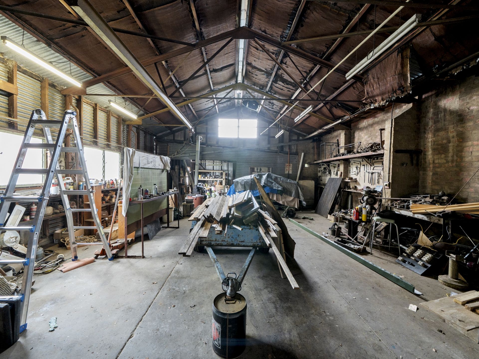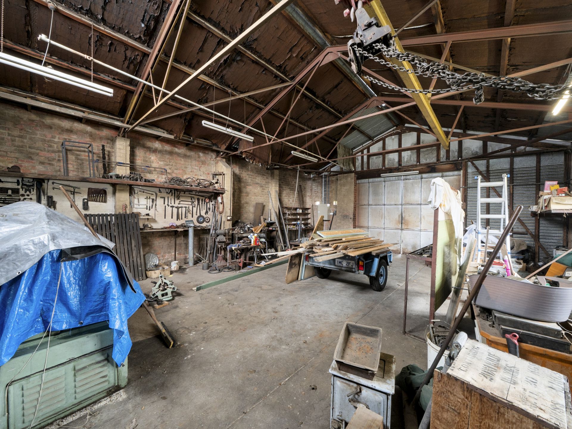 Significant upgrades have been made over the years, including restumping in 2021, a modernised switchboard, and a large corrugated shed with 3-phase power that was brought up to current standards just four years ago – ideal for tradespeople, hobbyists, or additional storage. The home is capped with distinctive pressed aluminium roof tiles, adding durability and character to its exterior.