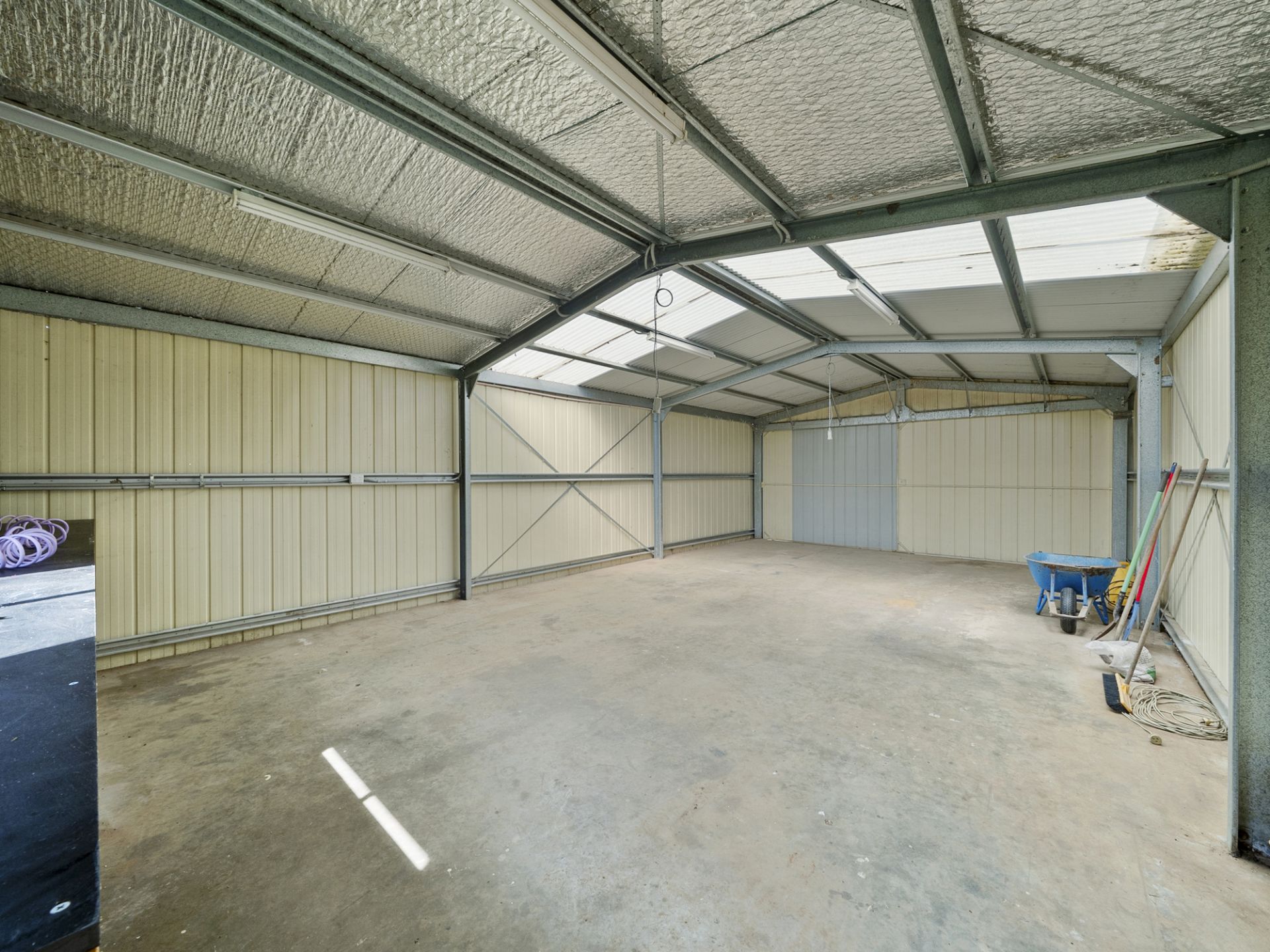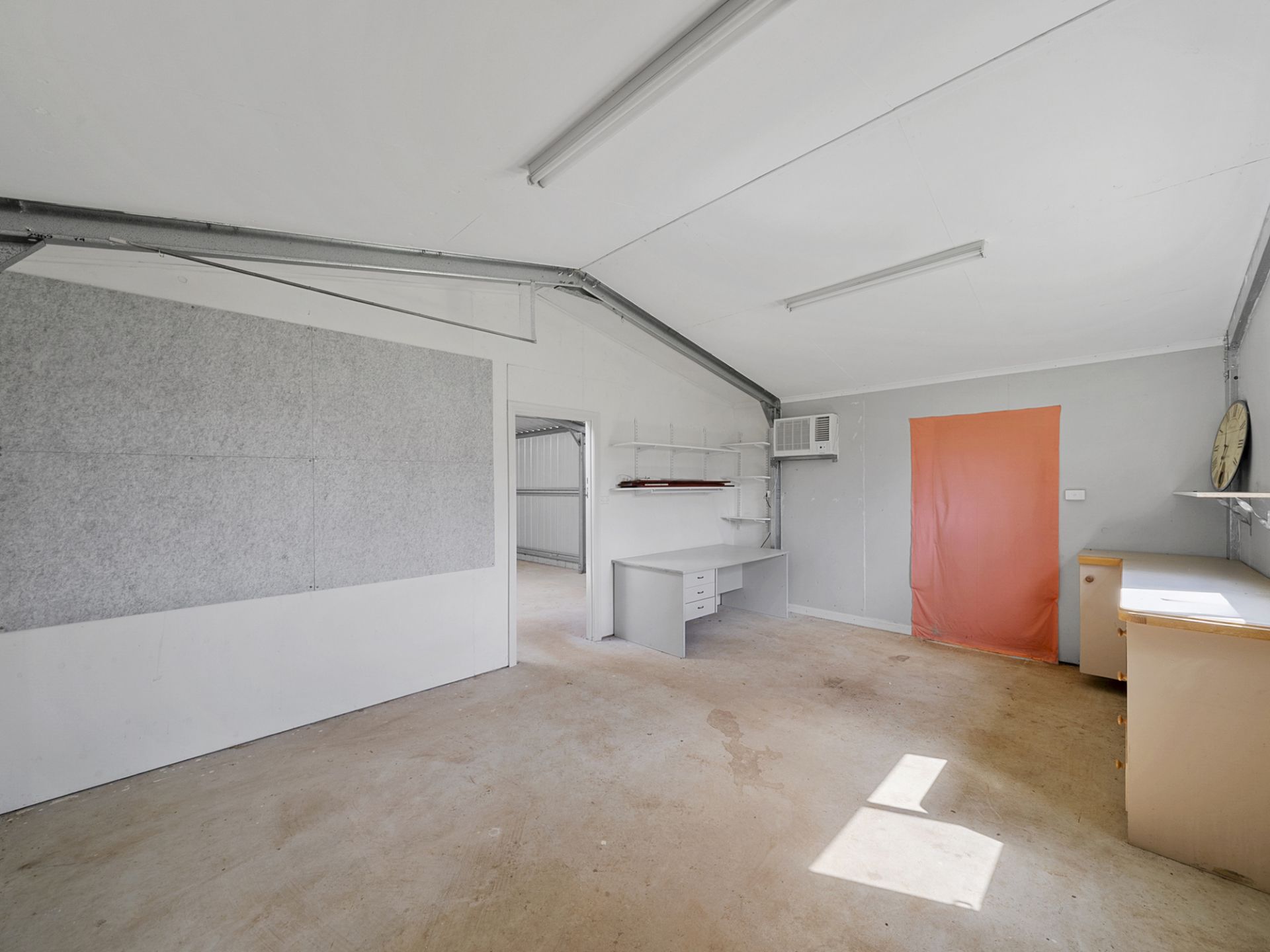 Outdoor infrastructure is a major highlight, with five garage spaces, a single garage, an open double car space shed attached to a shipping container, and a powered workshop with built-in benches and 15-amp power. A fully lined office/sleepout with heating and cooling offers a great work-from-home space, games room or teenage retreat + double garage. A secure dog run and pen add to the appeal for animal lovers.