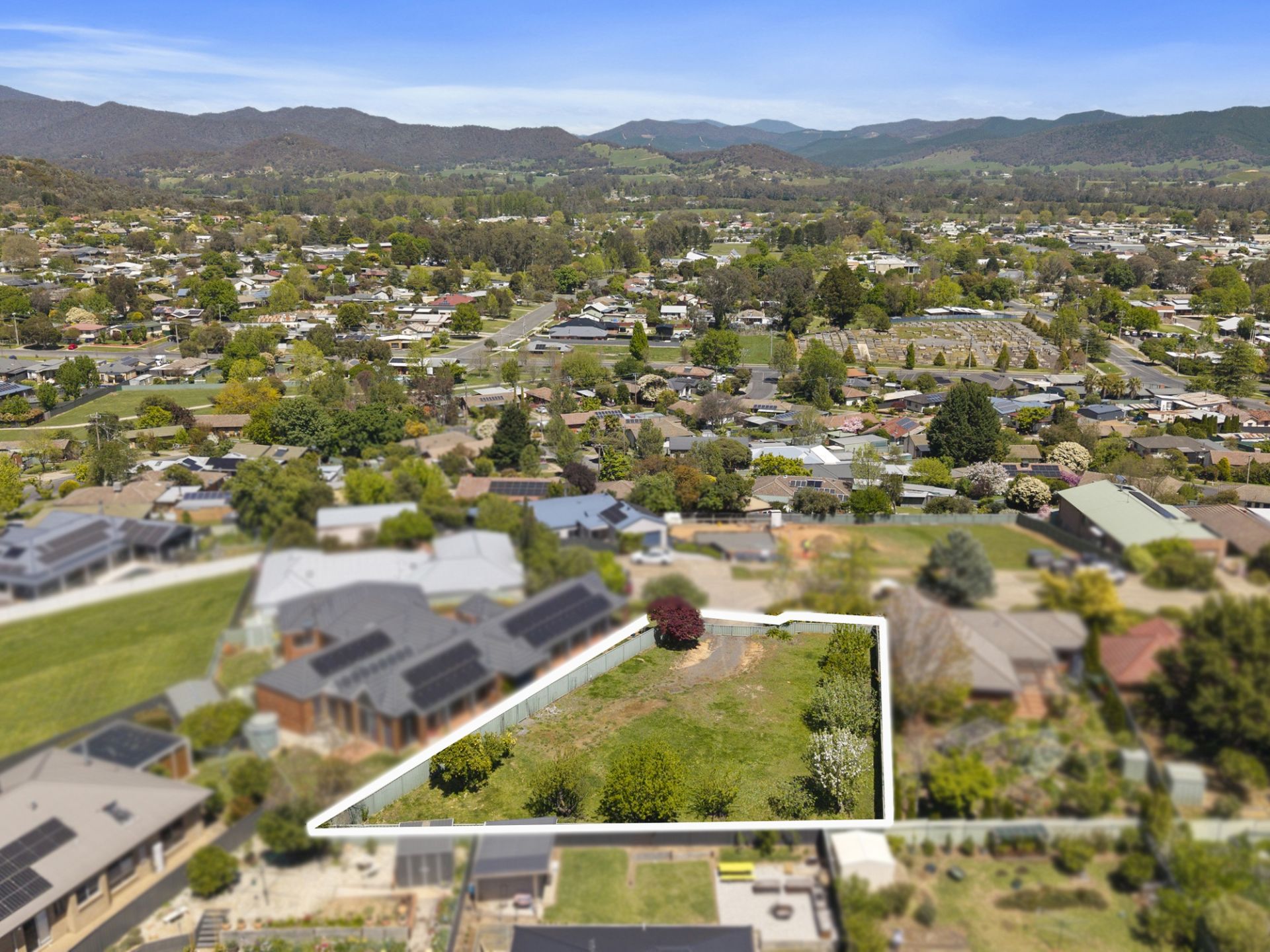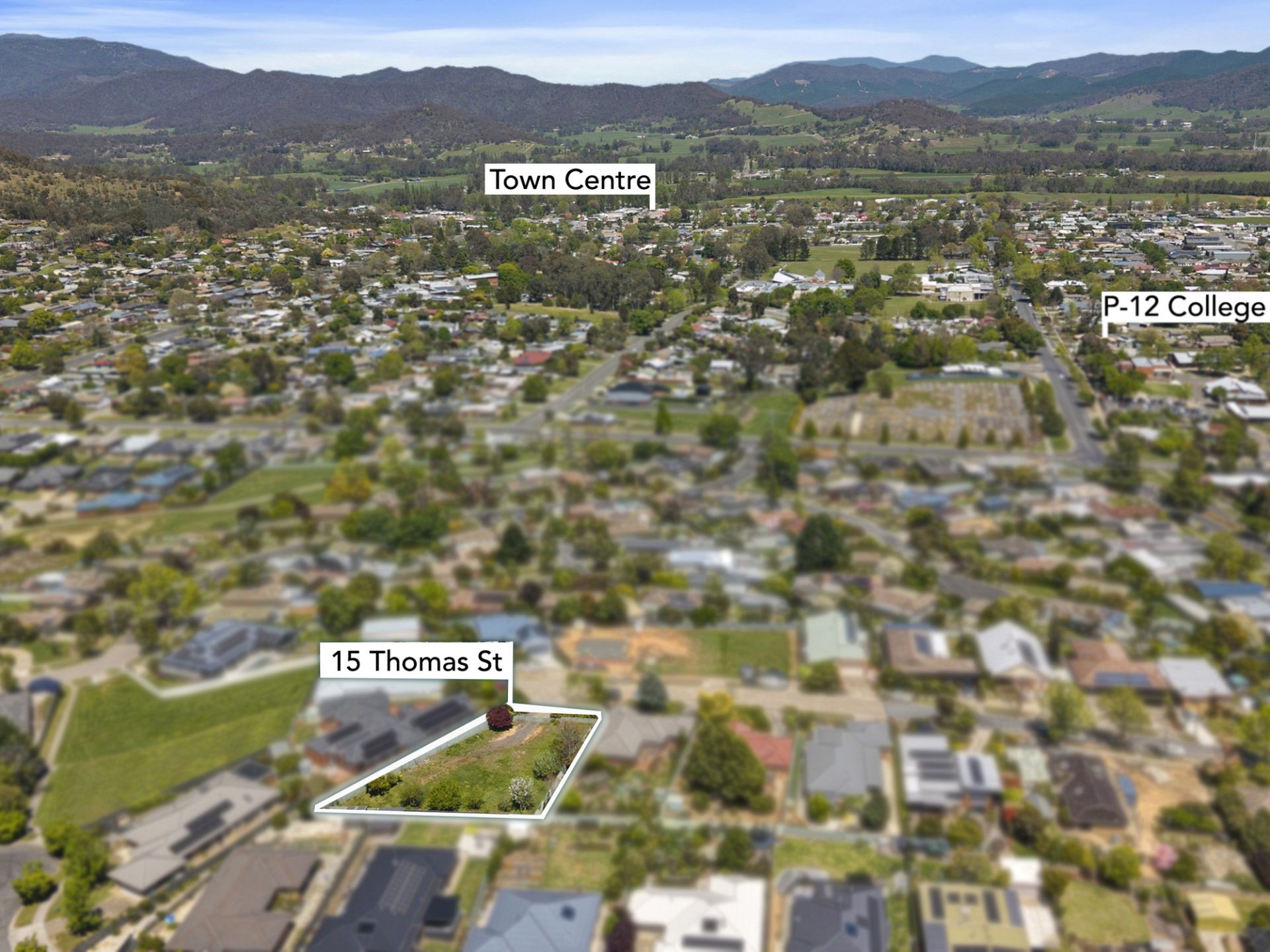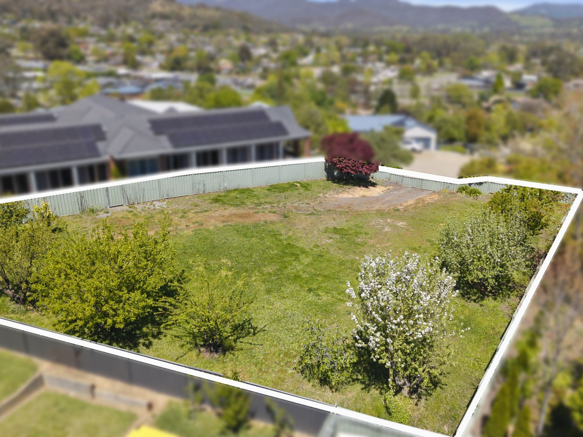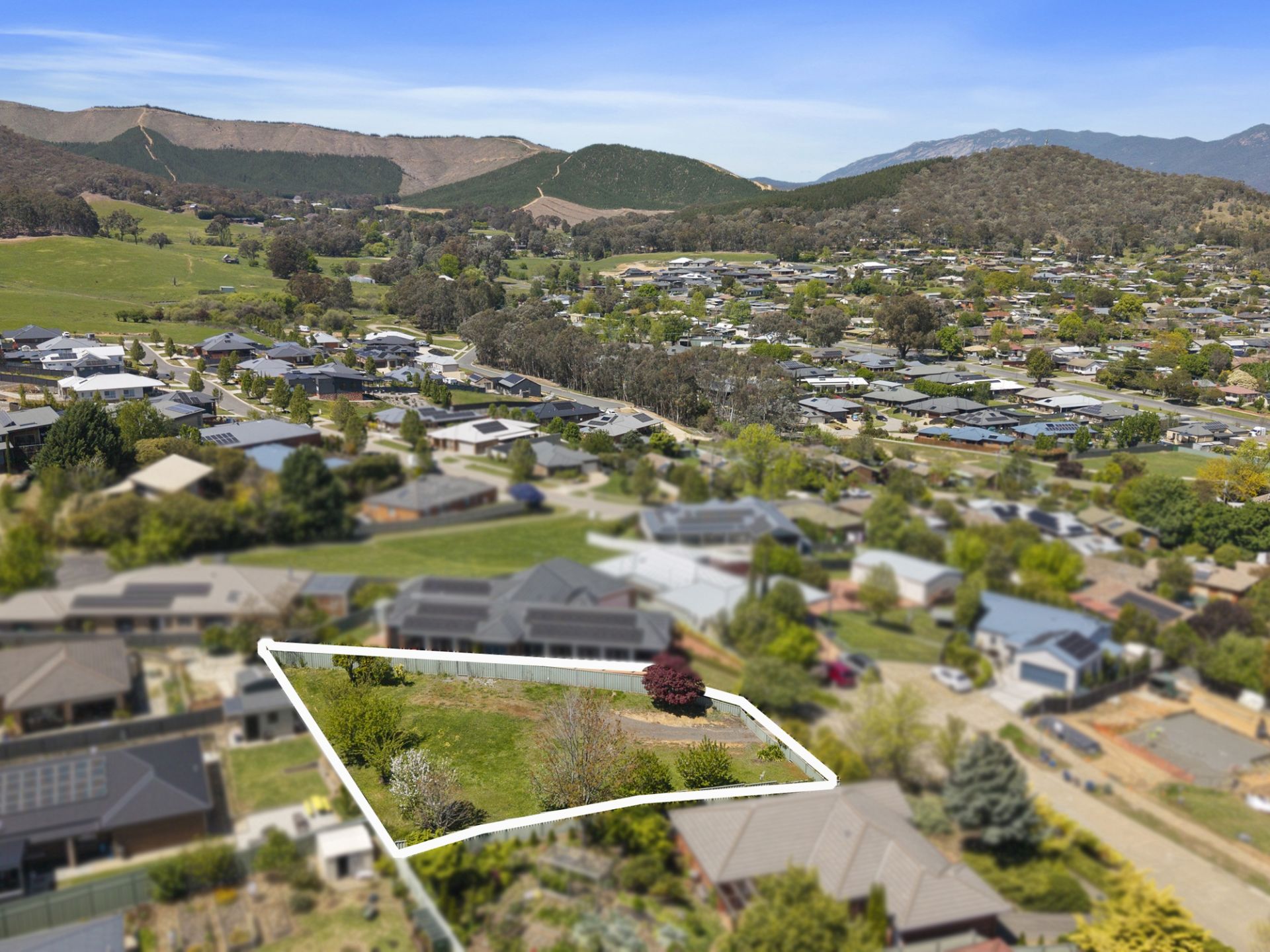 Perched at the top end of Thomas Street, this generous 802m2 flat block offers a rare opportunity to build your dream home in one of Myrtleford’s most desirable locations (including a planning permit). Elevated from the street with a gently rising driveway, the block levels out beautifully to provide a perfect building platform that captures stunning panoramic views over the township and the surrounding mountains and hillsides. Fully fenced and featuring established fruit trees, the property is ready to go. Its prime position offers both privacy and convenience with just a short walk to local schools, the sports stadium, and the golf course and being one of the few blocks in town with a favourable north aspect, this property offers exceptional natural light and warmth throughout the day.