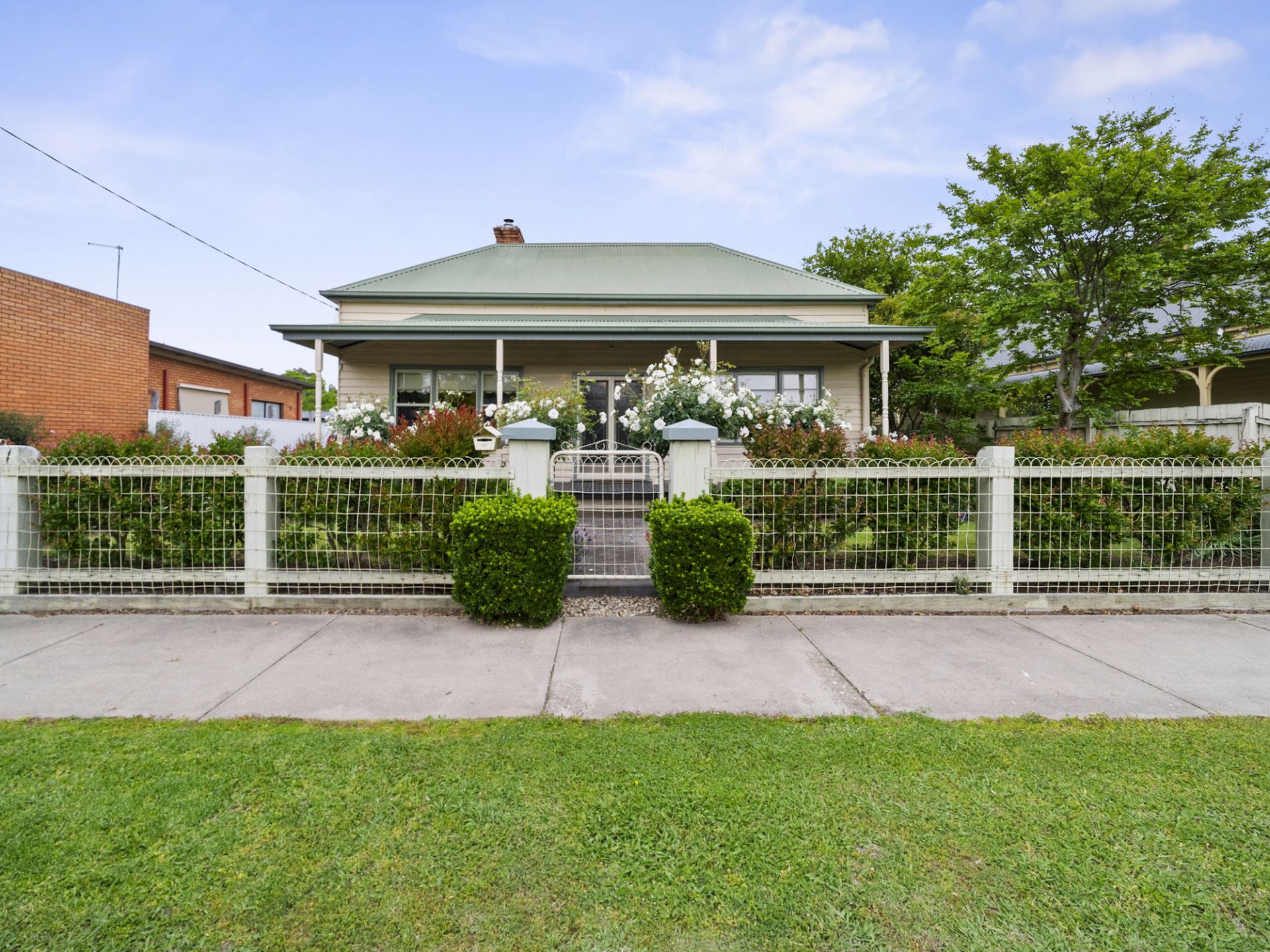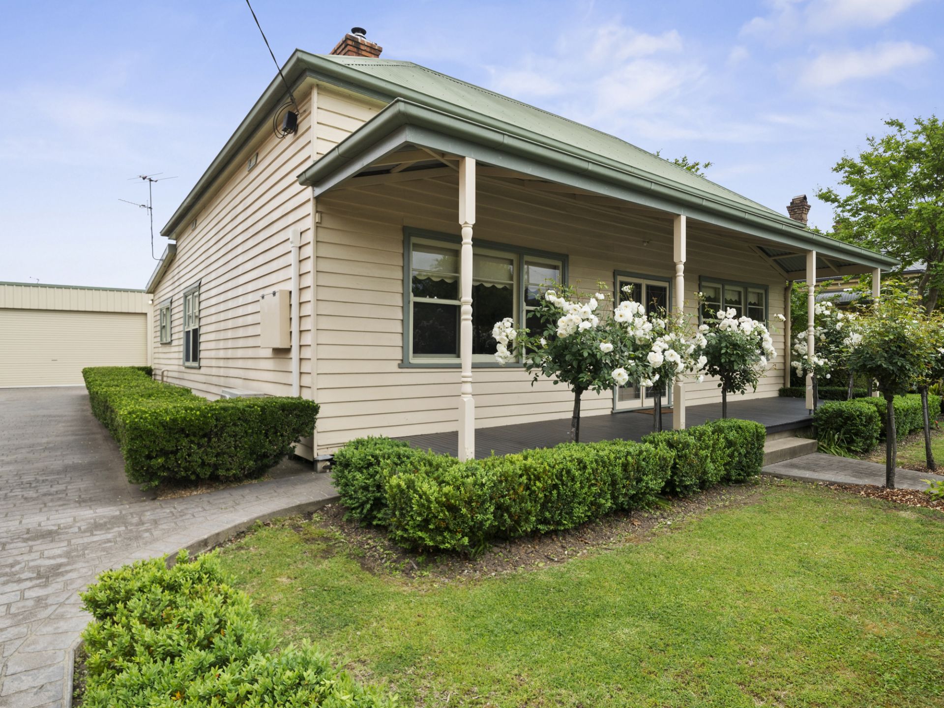 Perfectly positioned within easy walking distance of the town centre, this beautifully presented three-bedroom weatherboard cottage offers the ideal blend of charm, comfort, and convenience. Set on an impressive 645sqm allotment, the home captures the essence of relaxed country living with all amenities just moments away. Designed with both style and practicality in mind, it features two bedrooms with built-in robes and a versatile third bedroom suited for guests, a home office, or nursery. The fully renovated bathroom exudes sophistication with floor-to-ceiling tiles, a walk-in shower, modern vanity, and WC, complemented by a second separate WC for added functionality.