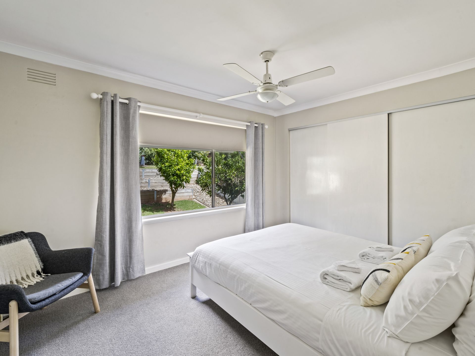 Each of the bedrooms is inviting, with the main bedroom offering built-in robes for convenient storage. While the bathroom features a full bath and vanity, with a separate WC for added practicality. The laundry complete the interior layout and provides direct access to the outdoors.